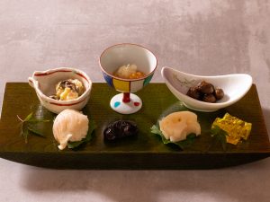 一、酒   肴  菊花寄せ 岩魚手毬寿司