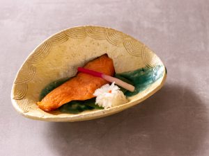 一、焼   物   紅鱒粕漬焼 菊花大根 はじかみ